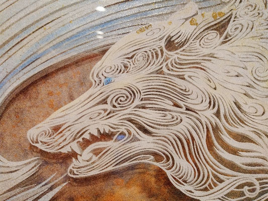 山火事を消そうとして走り回っている白狼の神(大口真神)です。日本の夏はいつからこんなに暑くなったんでしょう。