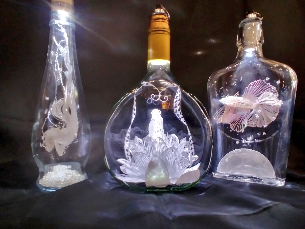 ボトルアートを中心に、葉書箋、極小立体切り絵アクセサリーを展示販売しました。
