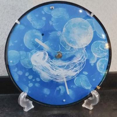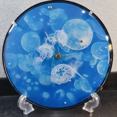 萩原朔太郎の詩「月光と海月」のイメージを切り絵時計にしました。